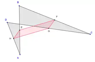 Théorème — Si ABCD est un quadrilatère quelconque et I, J, K, L les milieux de ses côtés, alors IJKL est un parallélogramme[1].