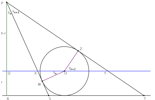 Supposons que le n-ième rayon fasse un angle avec la normale à la base. Si est paramétré selon la relation , alors les valeurs de , où et sont des constantes réelles, définissent une suite de rayons satisfaisant la condition d'isométrie des cercles inscrits, et de plus, toute suite de rayons satisfaisant la condition peut être produite par un choix approprié des constantes et .