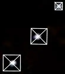 - La position et la taille des pyramides (censée être proportionnelle à la taille des étoiles) sont trop approximatives ;