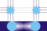 Cependant, lorsqu'un second objet, B, est présent, une partie des particules qui auraient frappé A du côté faisant face à B est intercepté par B, donc B agit comme un bouclier. Autrement dit, du côté faisant face à B, A sera frappé par moins de particules que du côté opposé. De la même façon, B sra frappé par moins de particules du côté faisant face à A que du côté opposé. On peut dire que A et B se font de l'ombre l'un à l'autre et que les deux corps sont poussés l'un vers l'autre par le déséquilibre de force induit (situation de l'illustration P2). Selon cette théorie, l'attraction apparente entre les deux corps est donc en réalité une poussée réduite du côté faisant face à l'autre corps, donc la théorie est parfois appelée « théorie de la poussée » ou « théorie de l'ombre », bien que l'on parle plus souvent de la théorie de la gravitation de Le Sage.