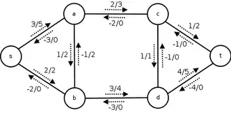 Les Allemands Franz Ernst Neumann et Jacobi, respectivement physicien et mathématicien, fondèrent en 1834 une série de séminaires. Le physicien allemand Gustav Kirchhoff était un des étudiants participant au séminaire entre 1843 et 1846, et il étendit le travail de Georg Ohm pour établir en 1845 les lois de Kirchhoff exprimant la conservation de l'énergie et de la charge dans un circuit électrique. En particulier, sa loi des nœuds stipule que la somme des intensités des courants entrant dans un nœud est égale à celle qui en sort. Un circuit électrique peut se voir comme un graphe, dans lequel les sommets sont les nœuds du circuit, et les arêtes correspondent aux connexions physiques entre ces nœuds. Pour modéliser les courants traversant le circuit, on considère que chaque arête peut être traversée par un flot. Ceci offre de nombreuses analogies, par exemple à l'écoulement d'un liquide comme l'eau à travers un réseau de canaux[Flot 1], ou la circulation dans un réseau routier. Comme stipulé par la loi des nœuds, le flot à un sommet est conservé, ou identique à l'entrée comme à la sortie ; par exemple, l'eau qui entre dans un canal ne disparaît pas et le canal n'en fabrique pas, donc il y a autant d'eau en sortie qu'en entrée. De plus, une arête a une limite de capacité, tout comme un canal peut transporter une certaine quantité maximale d'eau. Si l'on ajoute que le flot démarre à un certain sommet (la source) et qu'il se termine à un autre (le puits), on obtient alors les principes fondamentaux de l'étude des flots dans un graphe.