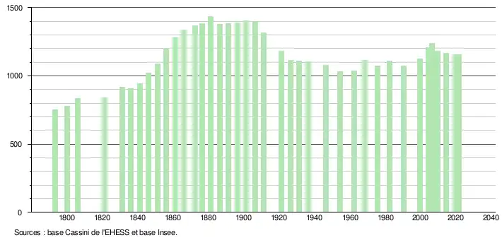 1 155 hab. (2021 en augmentation de 0,26 % par rapport à 2015)
