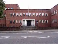La partie du bâtiment en bordure de la Botanic Road est une sorte de grand hall au toit crénelé.