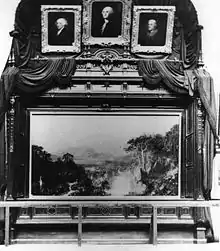 Il n'existe aucune trace de l'apparence ou de la disposition de l'exposition du Studio Building. Il a été largement affirmé, bien que probablement à tort, que la pièce était décorée de feuilles de palmier et que des lampes à gaz avec des réflecteurs argentés étaient utilisées pour éclairer le tableau[8]. Il est plus certain que le « cadre » en forme de fenêtre à battants du tableau avait une largeur d'environ 4 × 4 m, ce qui imposait encore plus le tableau au spectateur. Il était probablement fait de châtaignier brun, ce qui s'écarte du cadre doré dominant à cette époque. La base de l'édifice reposait sur le sol, ce qui garantissait que l'horizon du paysage serait affiché à la hauteur des yeux du spectateur. Des rideaux ont été installés, donnant l'impression d'une vue par la fenêtre. Une lucarne dirigée vers la toile renforçait la perception que le tableau était éclairé de l'intérieur, tout comme les tissus sombres drapés sur les murs de l'atelier pour absorber la lumière. Des jumelles d'opéra étaient fournies aux spectateurs pour leur permettre d'examiner les détails du paysage, et il se peut qu'elles aient été nécessaires pour voir le tableau de manière satisfaisante, étant donné la foule dans la salle d'exposition[8].