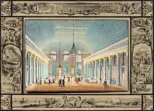 Dans la salle, sous la coupole, il y a trois portes qui chacune donnent accès à une salle de spectacle. Elles sont séparées par d'immenses statues, copies de modèles grecs représentant les divinités de l'Olympe, surmontées de médaillons en mosaïque représentant, eux, les divinités du Panthéon romain.