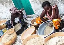 Femmes de Joal-Fadiouth préparant le millet pour le couscous