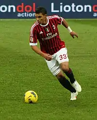Le , l'AC Milan bat la Juventus sur le score de 3 buts à 0[53]. Thiago Silva est l'un des meilleurs joueurs du Milan ce jour-là[54],[55] et son association avec Alessandro Nesta est si performante que la Gazetta Dello Sport la compare au duo mythique du Milan AC, Franco Baresi et Alessandro Costacurta[56]. Le , Thiago Silva se blesse à nouveau, face à l'Udinese Calcio[57], et manque le match retour des huitièmes de finale de Ligue des champions contre Manchester United[58]. Milan, affaiblie par les blessures de plusieurs joueurs perd ce match 4-0 et quitte la compétition[59]. Le , Thiago Silva est élu « Homme du match » lors du match nul contre l'AS Roma, futur dauphin de l'Inter Milan[60]. À la fin de la saison, la Gazzetta dello Sport désigne Silva comme le troisième meilleur défenseur de Serie A[61].