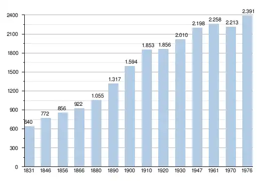 - Sources : INS, Rem. : 1831 jusqu'en 1970 = recensements, 1976 = nombre d'habitants au 31 décembre.