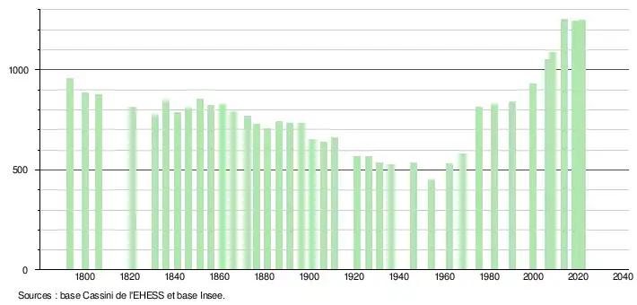 En 2021, la commune comptait 1 249 habitants[Note 7], en diminution de 2,27 % par rapport à 2015 (Eure-et-Loir : −0,64 %, France hors Mayotte : +1,84 %).
