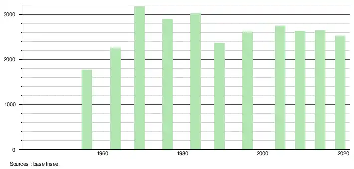En 2019, la commune comptait 2 524 habitants[Note 1], en diminution de 4,5 % par rapport à 2014 (Nouvelle-Calédonie : +0,98 %).