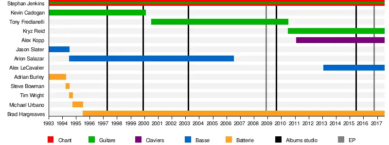 - Arion Salazar – basse, chœurs, guitare, piano (1994–2006)