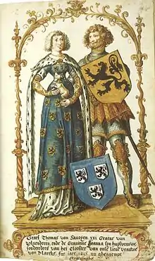 Le , Thomas épouse à Gand, en premières noces, Jeanne de Constantinople (1188-1244), fille de Baudouin Ier, comte de Flandre et de Hainaut et empereur latin de Constantinople[8], et de Marie de Champagne. Elle meurt, sans enfants, le .