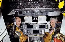 Photographié avec son équipier à bord de la navette peu avant la mission STS-4.