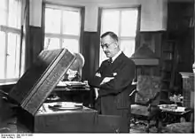 Dès 1933, il émigre en Suisse puis dans le Sud de la France où il demeure quelques semaines avec sa famille dans une villa à Sanary-sur-Mer[7]. Il rejoint ensuite à nouveau la Suisse et s'installe à Küsnacht, près de Zurich, afin de se tenir éloigné de la tourmente politique que connaît alors son pays. Les premiers mois du régime nazi le convainquent, après un moment d'hésitation, de ne pas retourner en Allemagne. En 1936, il est déchu de la nationalité allemande. Connaissant les œuvres de Sigmund Freud, il dira d'Hitler :