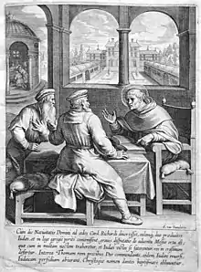 Thomas d'Aquin est l'héritier du schéma explicatif dit « des quatre sens de l'Écriture » qui repose essentiellement sur une distinction entre le sens littéral et le sens spirituel ou allégorique des textes sacrés, diffusée dès l'Antiquité par les auteurs du Nouveau Testament. Thomas en affine l'explication théorique ou scolastique. Les choses signifiées par les mots de l'Écriture renvoient elles-mêmes à d'autres choses. C'est ainsi que l'herméneutique scripturaire[38] de Thomas d'Aquin expose le sens littéral ou historique comme étant le fondement des sens spirituels de l'Écriture : le sens allégorique, le sens tropologique et le sens anagogique.