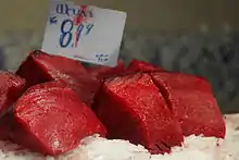 L'Union internationale pour la conservation de la nature (UICN) a relevé que le thon rouge du Pacifique (Thunnus orientalis) était une espèce vulnérable et menacée d'extinction[18]. En cause, la pêche intensive au large des côtes de la mer Japon pour satisfaire l'appétit toujours grandissant des Japonais. Un plat qui à lui seul accapare 62 % de la production thonière[19].