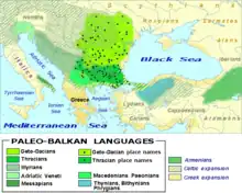 Enfin, le cas des Gètes et des Daces est discuté par les historiens, antiques comme modernes. Une première tradition, issue d'Hérodote, prétend que Thraces / Gètes / Daces désigne un même peuple[36]. Les Gètes (ou Daces pour les Romains) seraient les Thraces vivant au nord du Danube. Une deuxième tradition issue de Pline l'Ancien prétend qu'il s'agirait de trois peuples distincts[37]. Mais le consensus moderne veut que les Géto-Daces appartiennent bien à la famille thrace[2], les Gètes vivant à l'est des Carpates, les Daces au nord-ouest des Carpates et les Thraces entre le sud du Grand Balkan et la mer Égée. Ils parlent des langues différentes mais qui appartiennent à la même branche daco-thrace de la famille des langues paléo-balkaniques ; ils partagent par ailleurs des coutumes et des croyances communes. Finalement selon ces historiens, les Géto-Daces sont des Thraces qui ont connu l'influence des Scythes à partir du VIIe siècle av. J.-C. et des Celtes à partir du IVe siècle av. J.-C.[2].