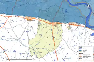 La superficie cadastrale de la commune publiée par l’Insee, qui sert de références dans toutes les statistiques, est de 47,29 km2[11],[Note 1]. La superficie géographique, issue de la BD Topo, composante du Référentiel à grande échelle produit par l'IGN, est quant à elle de 47,05 km2[8]. Son relief est relativement plat puisque la dénivelée maximale atteint 45 mètres. L'altitude du territoire varie entre 104 m et 149 m[14].