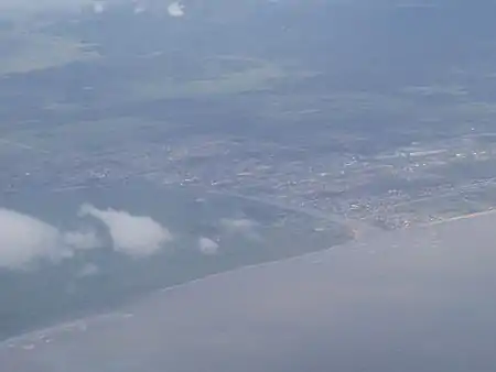 Vue du ciel de l'embouchure du rio Tijucas et du centre ville de la municipalité.