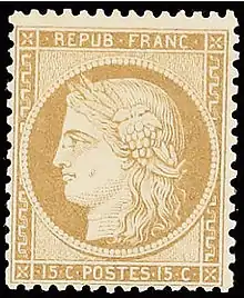 Cérès, 15 centimes bistre-jaune, dentelé, dit « petits chiffres »