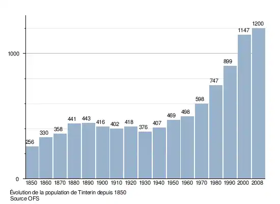 Selon l'Office fédéral de la statistique, Tinterin compte 1 336 habitants en 2022[1]. Sa densité de population atteint 370 hab./km2.