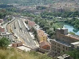 À partir de 1871, la construction d'une ligne de chemin de fer reliant Rome à Pescara, en passant par Tivoli, est envisagée. Ce projet est approuvé en 1876, confié à une société belge, réalisé en seize mois avec l'inauguration de la ligne le . La compagnie ferroviaire acquiert également les thermes de Tivoli Terme et ouvre une gare afin de développer l'activité et l'attrait de la ligne pour les Romains. En 1928 la ligne est électrifiée[37]. Lors de la Première Guerre mondiale opposant notamment l'Italie à l'Empire austro-hongrois, la municipalité réquisitionne le la villa d'Este, qui est de fait possession de la couronne d'Autriche par le jeu des mariages princiers, et la transforme en caserne pour ses troupes[38]. La villa sera dès lors propriété nationale.