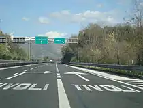 Durant la période fasciste, la ville de Tivoli est influencée par la création le par le gouvernement Mussolini de la nouvelle ville de Guidonia près de Montecelio qui est inaugurée le par le Duce. D'une part, cette fondation ampute le territoire tiburtin de 18,75 km2, soit 20 % de sa surface essentiellement localisée dans la zone des carrières et des sources thermales[note 4], et de 1 055 habitants, soit 5 % sa population d'alors[39]. D'autre part l'expansion de Guidonia entraîne un important développement d'industries locales (principalement liées à l'aéronautique qui s'implantent autour de l'aéroport militaire Alfredo Barbieri di Montecelio et du centre d'études et de recherches en aéronautique dit Direzione Superiore Studi ed Esperienze mais aussi fortement liées à la cimenterie Unicem qui ouvre un très grand centre de production pour répondre aux besoins importants des nouvelles villes créées dans le Latium)[40] et une politique volontariste de bonification agricole de cette zone de l'Agro Romano dont les retombées bénéficient également à Tivoli tant du point de vue de l'emploi direct que de l'activité économique secondaire induite.