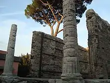 D'un point de vue historique, Tibur aurait été une colonie d'Alba Longa : des traces de peuplement remontent au XIIIe siècle av. J.-C. avec une fondation probable du village de Tibur par les peuples latins vers sur le site de l'actuelle acropole, voire précédemment par les Sicules avant leur refoulement de la péninsule vers la Sicile au tournant de -1200[10]. Sur le plan archéologique, la structure la plus ancienne retrouvée à Tivoli est le mur carré d'enceinte de la ville datant du IVe siècle av. J.-C., probablement vers -380, et enserrant l'acropole[11]. Tibur est un temps indépendante du pouvoir romain, en s'alliant par exemple avec les peuples gaulois en -361 contre Rome[12] et construisant ses propres structures défensives que sont l'opus quadrata. En -338, la ville chute devant les troupes romaines et s'allie finalement au pouvoir de la capitale de l'Empire naissant.