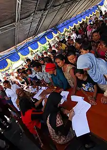En 1999-2001, la région est le théâtre de violences entre musulmans et chrétiens. Le conflit a pris fin en , lorsqu'une cérémonie a eu lieu pour que le conflit religieux qui avait frappé Halmahera ne se reproduise pas[9]. La cérémonie a consisté en un rituel selon l'adat ou droit coutumier, les deux parties s'engageant à respecter les droits de chacun et à renoncer à la violence[9]. Cette cérémonie était plus qu'une simple manifestation culturelle. Elle symbolisait la volonté majoritaire de la province des Moluques du Nord de reconnaître l'adat comme garant de l'unité sociale et de l'harmonie dans la région. Auparavant, les autorités locales avait informé les hauts responsables du gouvernement et les dirigeants politiques que s'ils ne pouvaient pas changer la situation pour une vie meilleure et faciliter le retour dans la région des personnes déplacées, la capitale du nouveau district du kabupaten de Halmahera du Nord devait être une autre ville que Tobelo. Il était nécessaire d'agir et plusieurs dirigeants d'associations influentes ont décidé que le recours à l'adat était la meilleure solution. L'idée était que l’adat permettrait de substituer l’identification tobelo à l'identité religieuse, qu'elle soit chrétienne ou musulmane[8].