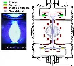 - le positionnement de bobines poloïdales à l’intérieur de la chambre plasmatique.