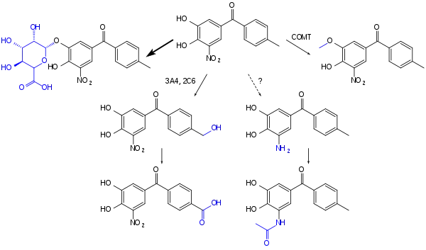 - K. Jorga, B. Fotteler, P. Heizmann et R. Gasser, « Metabolism and excretion of tolcapone, a novel inhibitor of catechol-O-methyltransferase », British Journal of Clinical Pharmacology, vol. 48, no 4, , p. 513–520 (PMID 10583021, PMCID 2014389, DOI 10.1046/j.1365-2125.1999.00036.x)