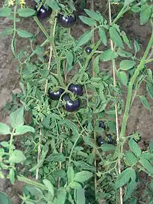 - Solanum lycopersicum var. cerasiforme, la tomate cerise, c'est la seule forme sauvage du genre rencontrée aussi en dehors de l'Amérique du Sud (Rick, 1986). Connue dans les Antilles françaises et en Guyane sous le nom de tomadose. Il est probable que la tomate cultivée ait été domestiquée à partir de cette forme sauvage[19].
