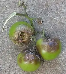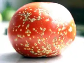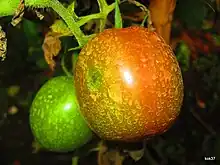 La tomate (Solanum lycopersicum L.) est une espèce de plantes herbacées du genre Solanum de la famille des Solanacées, originaire du Mexique. Le terme désigne aussi son fruit charnu : la tomate se consomme comme un légume-fruit, crue ou cuite ; elle est devenue un élément incontournable de la gastronomie dans de nombreux pays, particulièrement dans les Amériques.