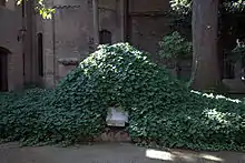 En effet, auparavant, les moines franciscains avaient creusé un trou à travers le mur du cloître et dans le sarcophage pour « mettre en lieu sûr » les restes du poète qu'ils considéraient comme un des leurs et refusèrent de les rendre malgré les pressions. Le sarcophage fut ensuite transporté dans le cloître et surveillé en permanence. En 1692, lors des travaux d'entretien de la tombe, les ouvriers étaient encore étroitement surveillés par les frères.