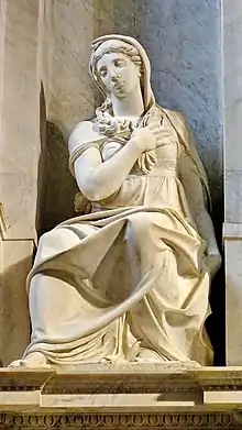 - L'Esclave mourant et L'Esclave rebelle : donnés en 1546 par Michel-Ange à Roberto Strozzi qui les offrit, en exil en France à François Ier (aujourd'hui au Musée du Louvre). Les Esclaves représentent les états de l'âme[1].