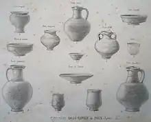 Dessin d'émile Gastebois sur des fouilles de Morel, bibliothèque Carnegie (Reims).