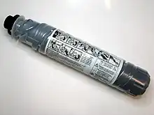 Le toner est une encre en poudre[1] utilisée dans les imprimantes laser, les imprimantes LED et les photocopieurs pour imprimer du texte et des images sur du papier par électrophotographie. Cette poudre est constituée en majeure partie de particules ultrafines de matière plastique, de résine et de métaux ou métalloïdes.