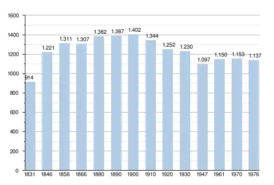 - Sources:INS, Rem:1831 jusqu'en 1970=recensements, 1976= nombre d'habitants au 31 décembre