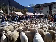 Les animaux tondus sont séparés de ceux en attente de la tonte.