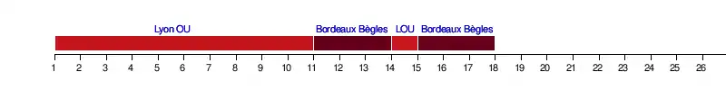 | Bordeaux Bègles | 6 | 2 | 2 | 2 | 2 | 2 | 2 | 2 | 2 | 2 | 1 | 1 | 1 | 2 | 1 | 1 | 1 | |||||||||