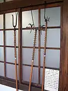 De gauche à droite : tsukubo, sodegarami, sasumata. | |