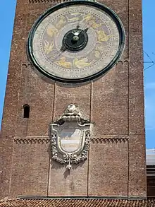 À la hauteur du quatrième étage du Torrazzo est encastrée depuis le XVIe siècle dans la façade une grande horloge astronomique dont le cadran aux 24 heures et 12 signes du zodiaque possède un diamètre de 8 mètres.