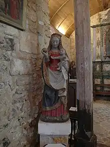 L'église Saint Pierre, du XVIIIe siècle, située sur une colline surplombant la vallée du Fouillebroc, possède une abside semi-circulaire du XIe siècle. Elle abrite plusieurs statues en bois polychrome..jpg.webp)
