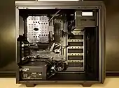 - l'alimentation électrique, dont la puissance et la connectique doivent correspondre à tous les éléments à alimenter (carte mère, microprocesseur,carte graphique, etc.) ;