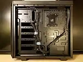 En informatique, le boîtier ou boitier[N 1] de l'unité centrale (en anglais computer case) loge et protège les principaux composants d'un appareil informatique (poste, système embarqué) composé d'un ou de plusieurs ordinateurs (carte mère, processeur, disque dur, etc.)[1]. Un boîtier est souvent composé d'acier, d'aluminium ou de plastique. Pour des raisons décoratives, il peut également contenir d'autres matériaux comme du bois ou du plexiglas. Lorsque le boîtier est horizontal et placé à plat sur le bureau, on parle de « boîtier de bureau » (en anglais desktop case), mais lorsqu'il est vertical et placé debout, on parle de « boîtier tour » (en anglais tower case).