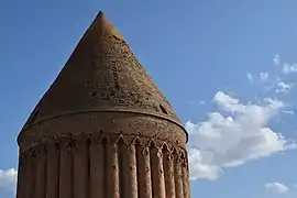 Après les fouilles relatives à la tour, les chercheurs ont supposé qu'elle avait été construite durant la période de gouvernement de l' Ilkhanat de Perse (XIIIe siècle) et qu'elle pouvait avoir servi de tombe pour un de ses dirigeants. C'est une thèse défendue par André Godard qui suggère que la tour ait pu être un mausolée pour le chef d'Ilkhanat, Arghoun, descendant de Gengis Khan mort en 1291. Cependant, quelques années plus tard, les scientifiques ont réalisé que la conception de la tour n'était pas aussi simple qu'ils ne semblait à première vue.