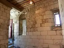En 1569, l’entrée a été déplacée à l’étage supérieur, et munie d’un pont-levis à chaîne et contrepoids qui franchissait une courtine formant coupure et au fond de laquelle s’ouvre l’ancienne entrée.