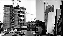 Avant la construction de la tour, la place Thiers était entourée d'un ensemble de bâtiments datant des XIXe et début du XXe siècles, en partie de style Art nouveau[1]. Outre l'Excelsior, s'y trouvaient la brasserie Thiers, les Magasins-Réunis, et la gare de Nancy-Ville, elle-même décorée d'une marquise en acier riveté[2] et fermée par des grilles[3],[4] ,[2]. Parmi les autres commerces, on comptait également un cinéma, une pâtisserie et des brasseries avec leurs terrasses. L'atelier de typographie du quotidien l'Est républicain se trouvait côté sud-est de la place, à l'emplacement actuel d'une taverne irlandaise. Sur la place se trouvaient des emplacements de stationnement, de grands arbres, des pelouses[5] et une statue d'Adolphe Thiers par Ernest Guilbert[6]. À l'angle entre la rue Raymond Poincaré et la rue Mazagran était établi depuis 1931 un magasin de confiseries des établissements Lefèvre Georges[7], et rue Mazagran était installé un magasin des confiseurs Lalonde. Des projets de refonte de la gare et de son environnement avaient déjà été réalisés en 1931[2].