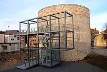 Une passerelle d'accès extérieur en métal placée contre la partie sud-ouest de l'édifice permet de se rendre aux deux niveaux de la tour. La tour peut, grâce à cette structure métallique, accueillir diverses activités d'expositions ou autres.