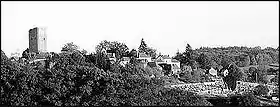 Façade Ouest de la tour médiévale avec le réhausssement et les mâchicoulis | |||